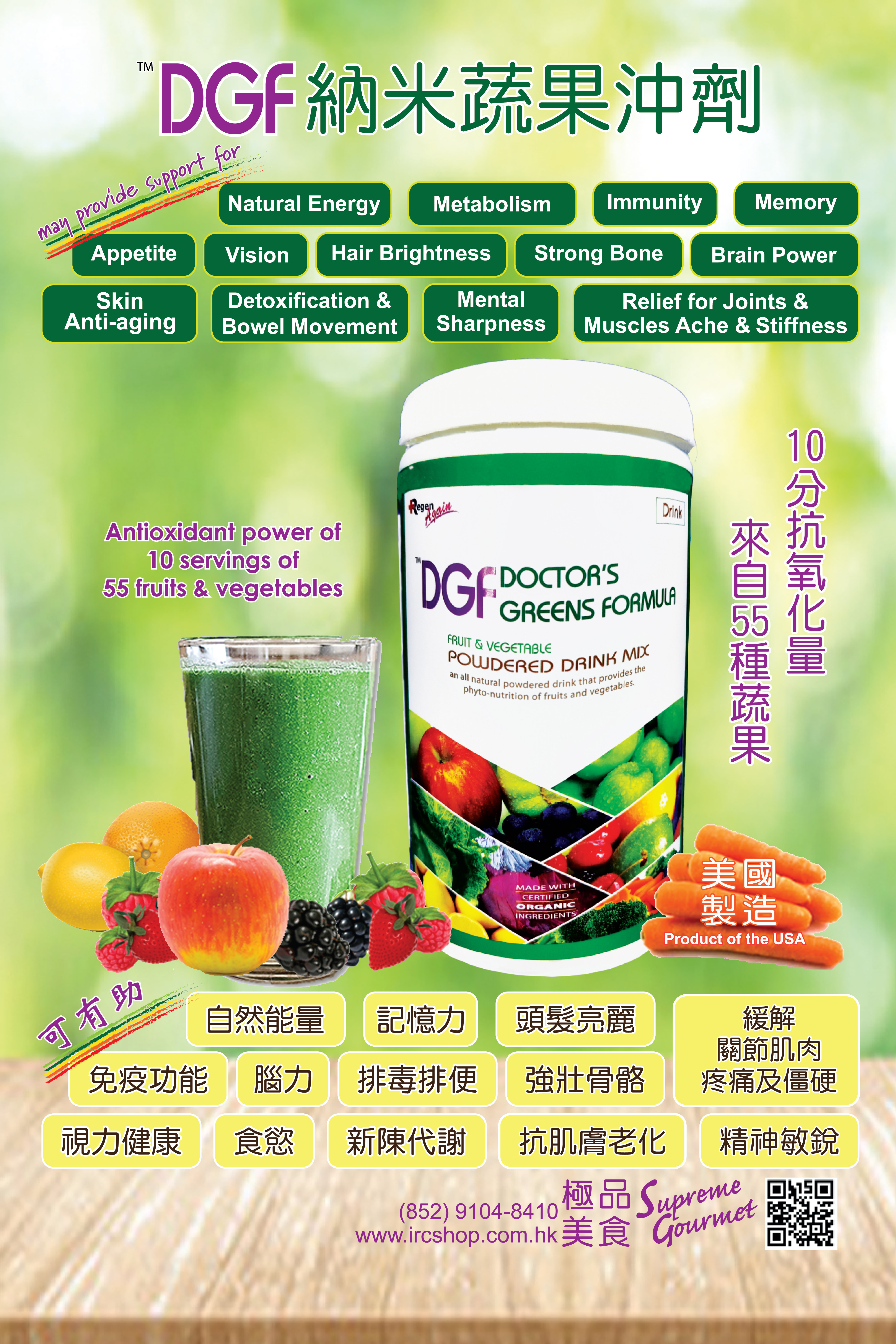 Phyto-nutrients are essential to health for a lifetime. DGF provides you with the easiest way to obtain the recommended phyto-nutrition and antioxidant power to the extent of more than 10 servings of fruits and vegetables every day.